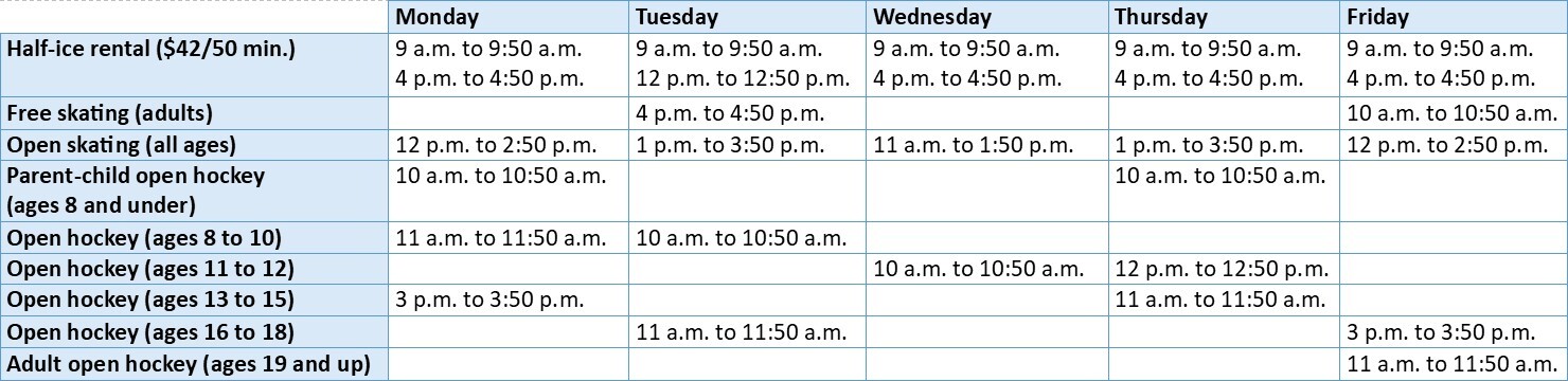 It is possible to reserve half-ice time at the arena for a skating session with family or friends via the recreation activities registration module.